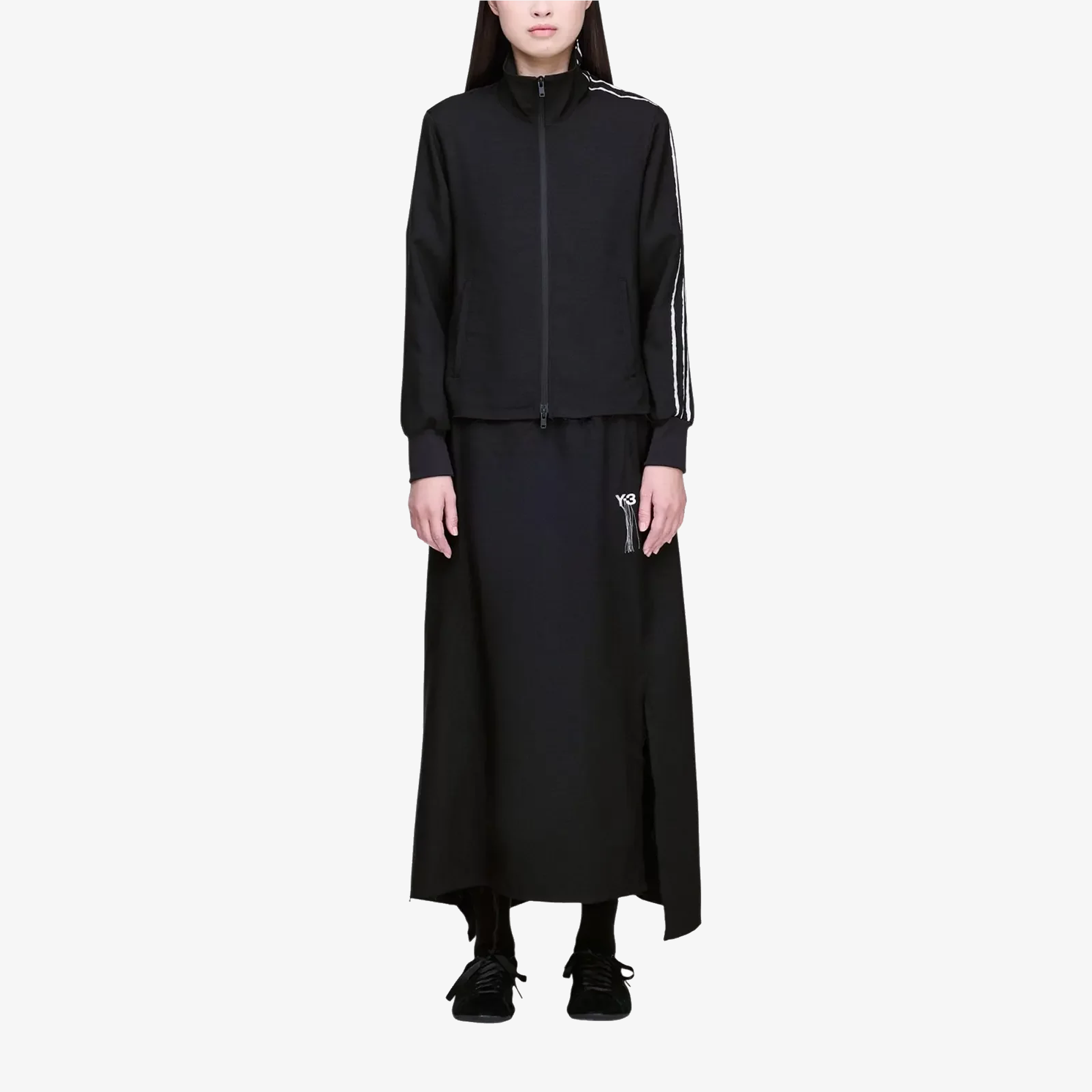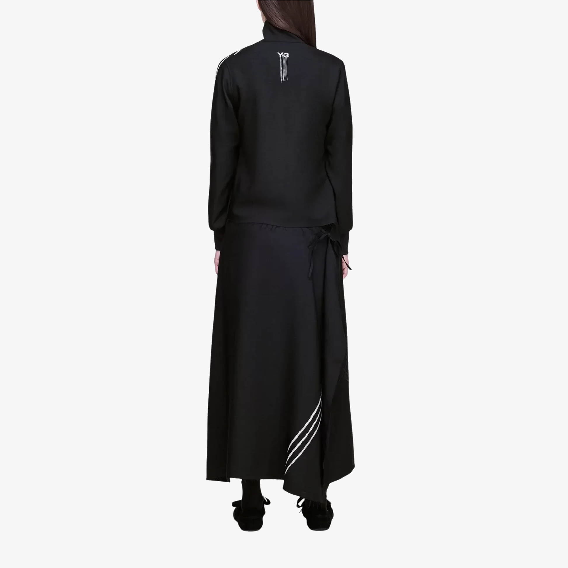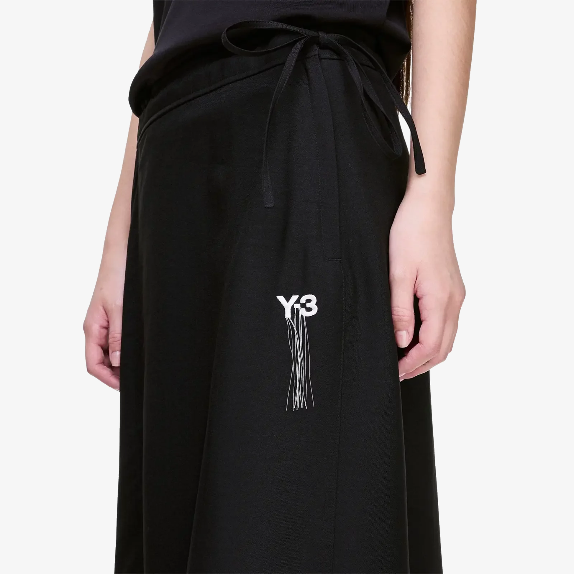 A Y-3 skirt with raw cut 3-Stripes and versatile styling options.