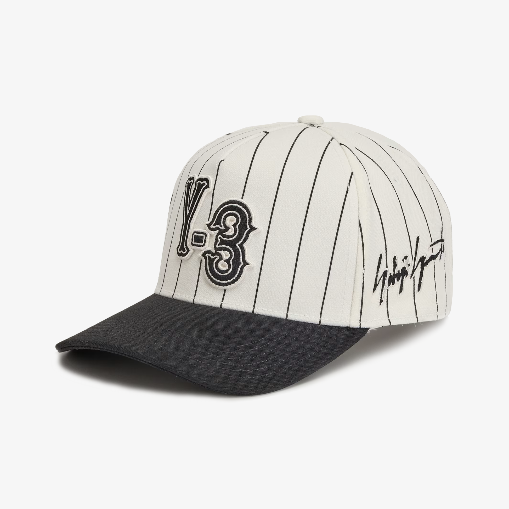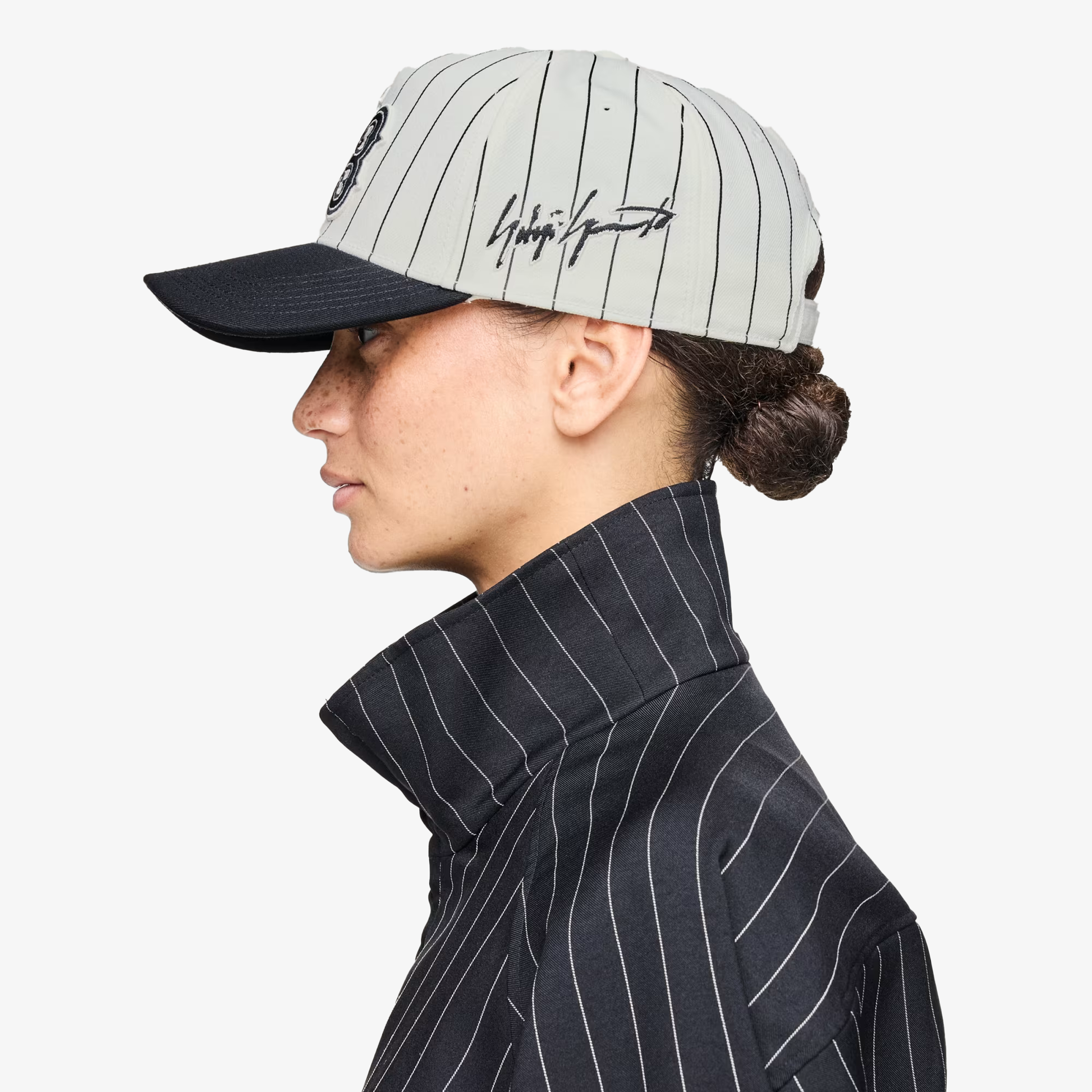 The Y-3 Pinstripe Cap redefines streetwear with a fusion of vintage baseball aesthetics and modern design. Crafted from durable twill fabric, it features a striking pinstripe pattern that captures attention. The high crown and curved brim offer a classic yet contemporary silhouette, making it a versatile accessory to add to your outfit. The cap is adorned with the iconic Y-3 embroidery at the center front, while Yohji Yamamoto's signature embroidery graces the side panel, adding a touch of exclusivity. For comfort and practicality, it includes a sweatband and a metal slider at the back, allowing for a customized fit.